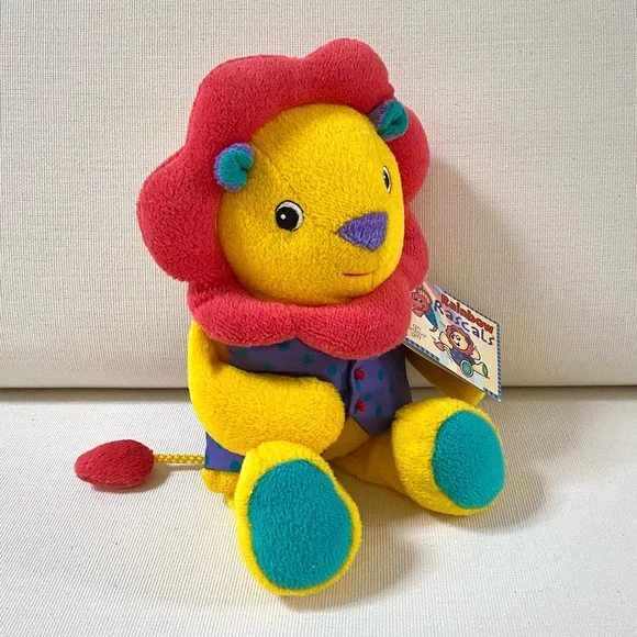 EDEN TOYS was a plush toy manufacturer that made collectibles stuffed toys of famous characters, as well as animals and teddy bears. EDEN TOYS was founded as a New York toy wholesaler in 1967 by two brothers David A. and Richard J. Miller. Together they built the company into a leading manufacturer of infants and preschool stuffed toys for the department store and specialty market. The company won worldwide recognition. It continued pleasing children and parents alike with plush toys into the late 1990s. They appear to have gone out of business sometime around 2001. VINTAGE EDEN LION RAINBOW RASCALS PLUSH STUFFED ANIMAL—BRAND: EDEN TOYS—STYLE: #10253—VINTAGE FROM 1990s—RARE: Hard to find in any condition, especially rare in new with tags condition—MATERIAL: Polyester fiber stuffing—To Machine Wash: See instruction tag (see image)—Clothing is part of the bear; stitched on at shoulder—CONDITION: New with Tags (NWT). This Eden plush stuffed lion had been carefully wrapped and boxed and kept on a closet shelf until now. It is in excellent new condition (has never been used, played with, displayed, washed)—COLOR: Yellow, Pink, Purple, Green—DIMENSIONS: (Approximate)H: 12”W: 7 1/2” (at arms)W: 4 1/2” (at waist)D: 3 3/4”TAIL: 5” Long*Comes from a smoke free, pet free home*The photos in this gallery are of the VINTAGE EDEN LION RAINBOW RASCALS PLUSH STUFFED ANIMAL you will receive.
