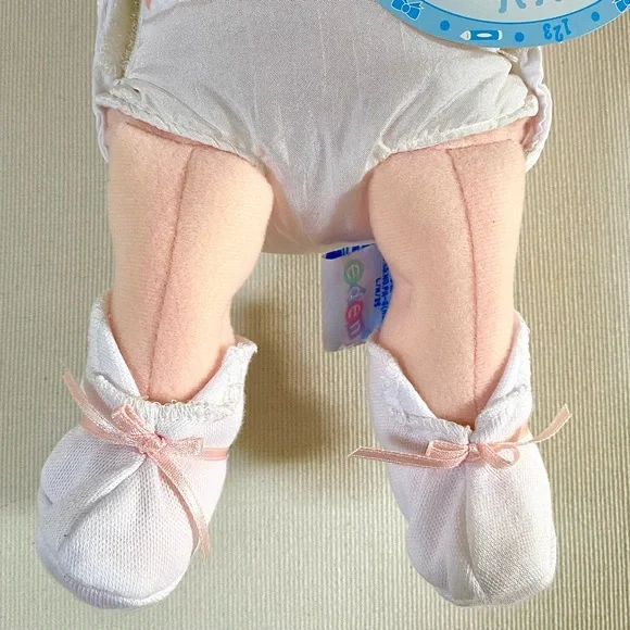 RARE Vintage 11” EDEN PLUSH CLOTH BABY DOLL with Clothes, Diaper, Booties and Rattle (clothes attached with threads). Although she was born in the 1990s, she is new with tags...