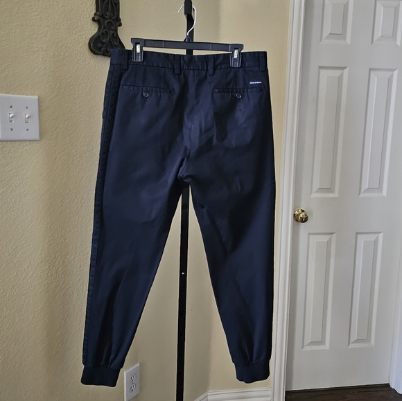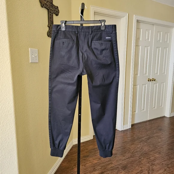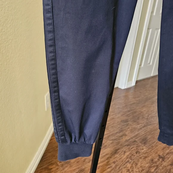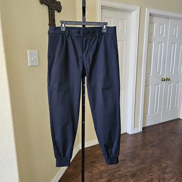 These joggers are designed for the athletic guy that wants to look good.With side panels, logo detail at back.Cotton, silk, elastane blend.Ver comfortable.Measurements approximately below. Inseam29"Waist 17.5" across.PN09