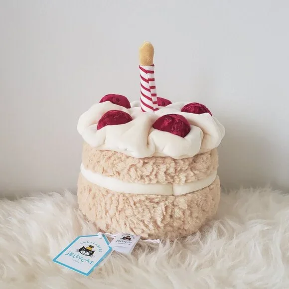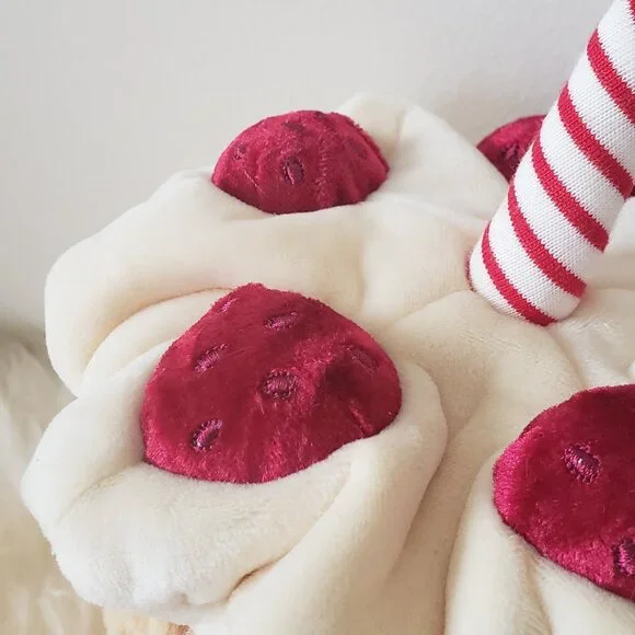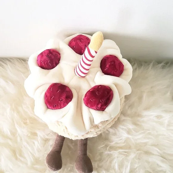If you are up to some fun, come and party with him! This four layered cake is topped with fluffy frosting and juicy fresh strawberries. The combination of frosting and cake delivers a chewy and gooey mouthful. (No wonder why its perfect in cuddlyness and softness). If you are looking for a birthday gift (especially for someone who likes strawberries) this is the perfect gift! NWT. Comes from a non-smoking house. Authentic . I can include a dust bag if wanted.