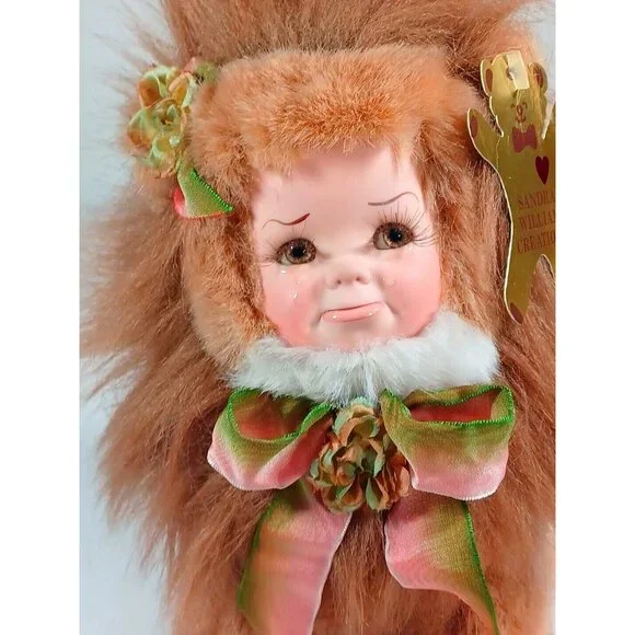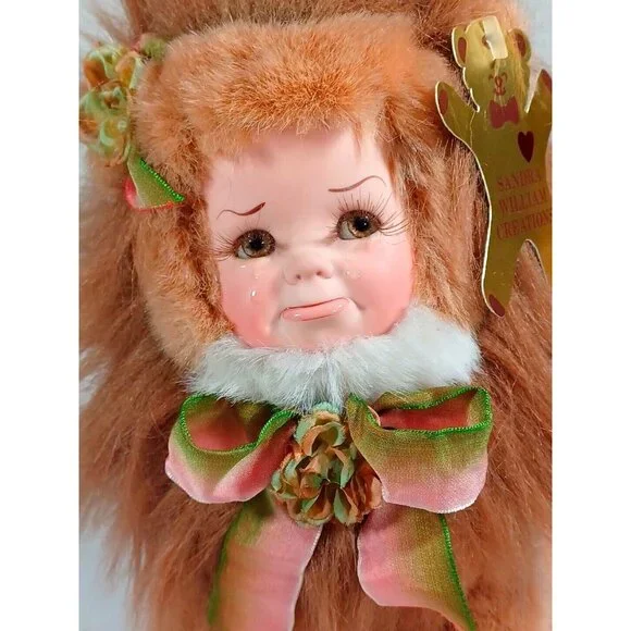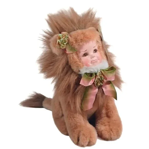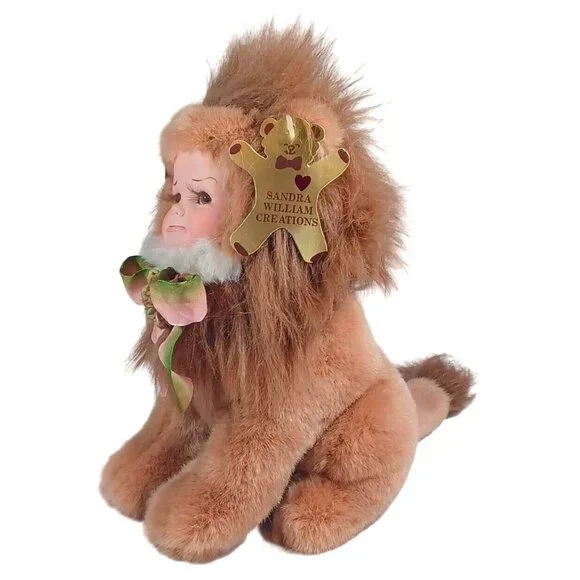 The Cryin´ Lion By Sandra Williams...Created in 1993This adorable vintage plush lion by Sandra Williams Creations features a super cute fluffy mane, soft body and apouty, crying porcelain baby face, Measuring 10 inches in height and 11 inches in length. The lion is handmade andhasit´soriginalwith dating information on the tag. The brown plush body is accented with a pouty child´sporcelain face, making it a unique addition to any doll or bear collection. This item would make a great gift for any occasion.Measurements include hair and tail.