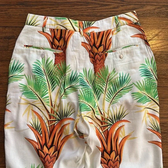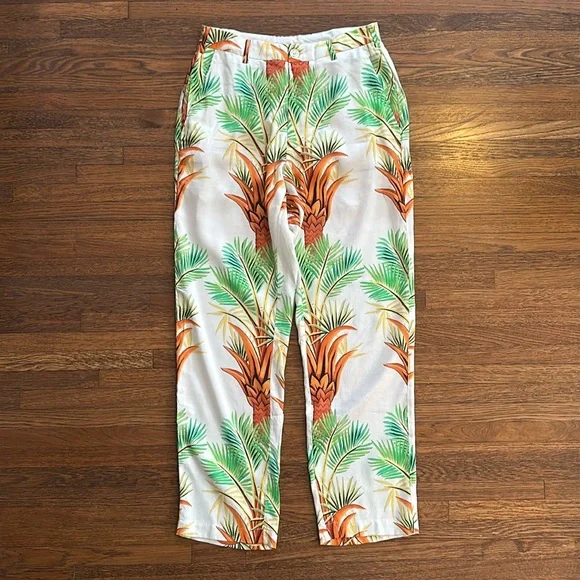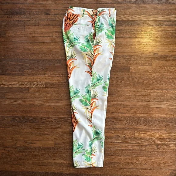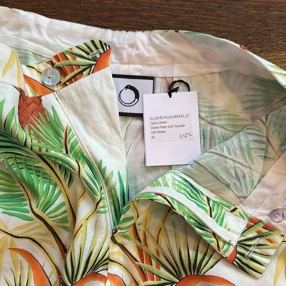Endless Joy Men’s Off White Palm Print Linen Pants.Very soft, lightweight fabric. Inseam is 32”. Leg opening is 15”. Waist laying flat is 15.5”.New with tags so in perfect condition. Matching Blazer available as well.