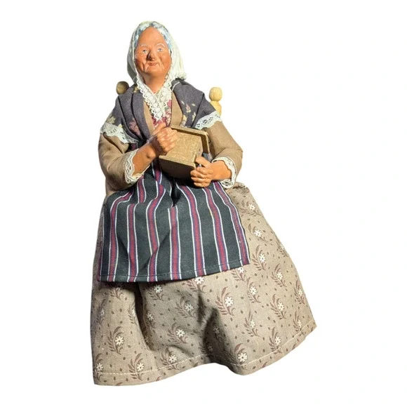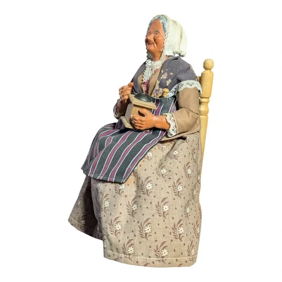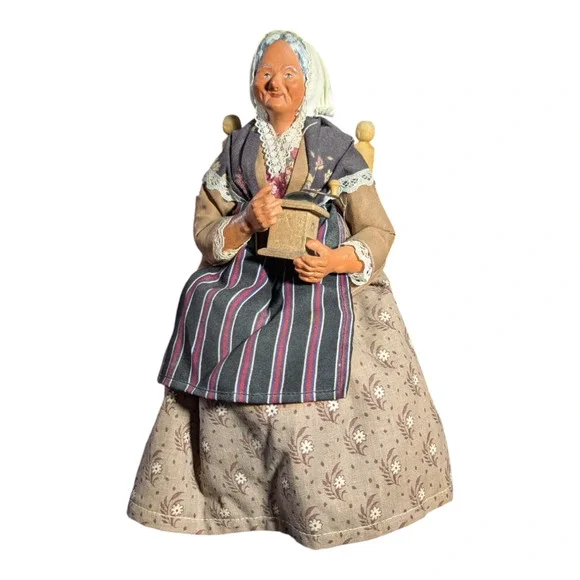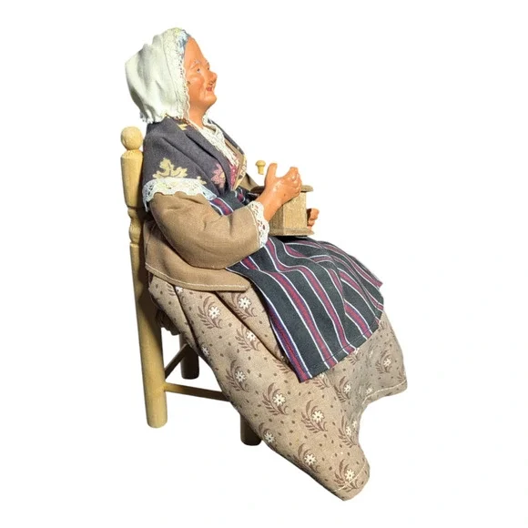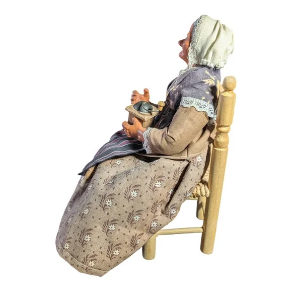 Vintage Stranton Doll - France - Old Lady with Coffee Grinder - Collectable