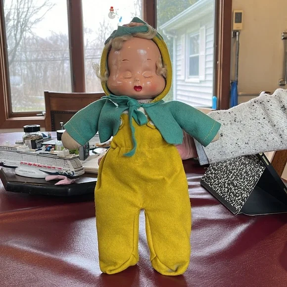 Trudy Three Face Doll from 1946. The 3 faces are sleeping, happy and crying. Has her undershirt. Please see photos as she is in fair to good vintage condition.