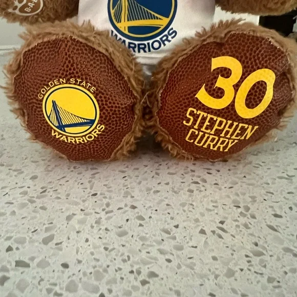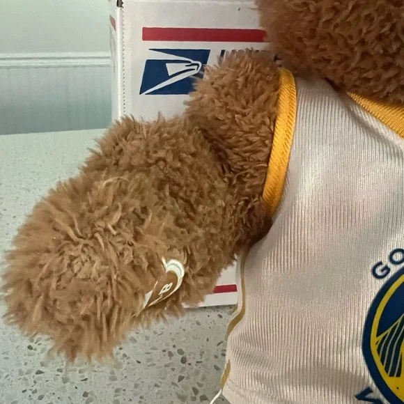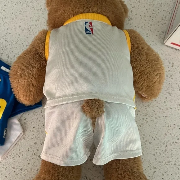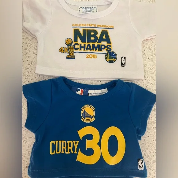 NBA GSW Build-a-Bear dressed in a Golden State Warriors uniform. Includes two shirts: a white 2015 NBA Champs shirt and a blue Curry 30 shirt.Adult owned and mainly kept in storage.