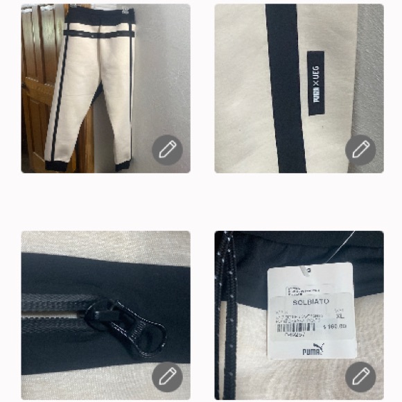 Boutique Puma UEG cream/black coloring with 2 zipper pockets in the back/front -a measurement of = across the waist is 15.5 - the rise is 15 & the inseam is 27 - across the edge of the cuff leg is 5.5 These have a retail of $160 excellent quality. Paired with the…puffer vest by puma - Down Fill...Excellent quality thick and plush - silky on the inside. Sport lifestyle puffer vest beautiful and fashionable all in one. I have a lot of pumas on my page if you’re interested put a basket together thanks… Chrissy