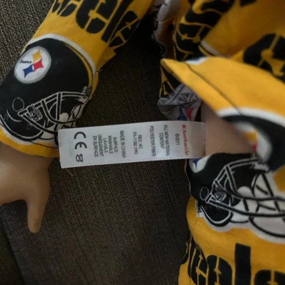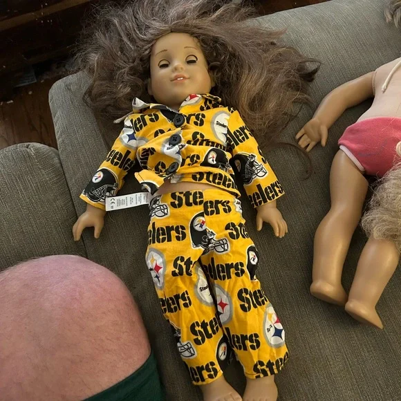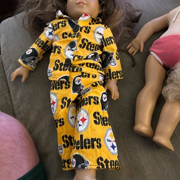 American Girl Doll with Pittsburgh Steelers Pajamas! EUC