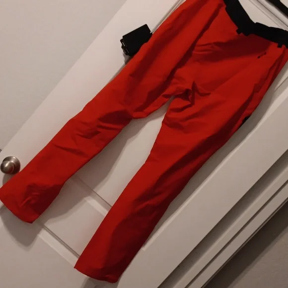 If you are into hard core climbing, you already know what these are for.Bright flare red and black with entire back in red for high visibility.Belt loops, zipper pockets, high-quality pants that were bought for a trip and never worn.32" inseam.Likely would work for ladies as well.**I have taken a look at this garment and found nothing that would deem it unusable--however, I am not guaranteeing perfection and there may be a small detail I missed. This does not mean it is undisclosed--it means that the garment has been hanging in a closet or folded in a container and is totally usable. I highly recommend that any resale garment (NWTags or used) is cleaned after delivery to freshen and prepare for wearing. This is a RESALE website, not a retail store. SOLD AS IS.**
