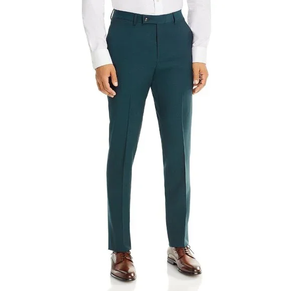 ROBERT GRAHAM Green RUSSELL Modern Fit Wool Mohair Flat Front Dress Pants 36 NWT