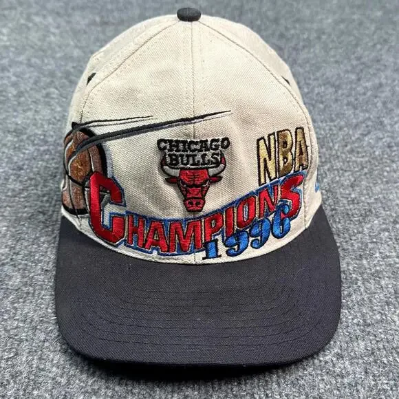 VINTAGE 90s CHICAGO BULLS 1996 NBA CHAMPIONS SNAPBACK HAT LOCKER ROOM CAP RARE