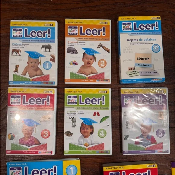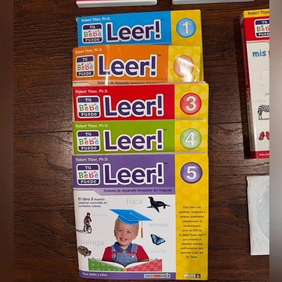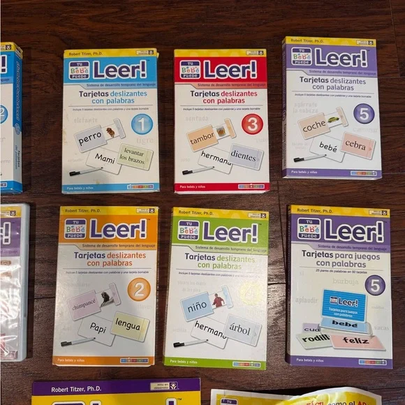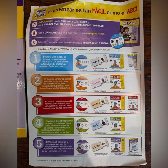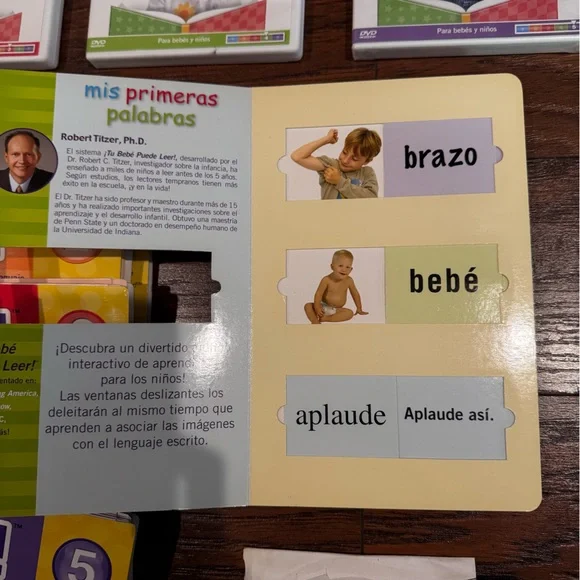 Engage your child with this set from “Your baby can read” in Spanish. Featuring vibrant colors, this set is perfect for interactive learning. Enhance your child´s reading and speaking skills with this fun, interactive and colorful collection.DVD Welcome and instructions DVD kids songs5 Your Child Can Read! DVDs in Latin American Spanish5 Lift-the-Flap Books in Spanish5 Sets of Sliding Word and Picture Cards in Spanish30 first words in Spanish