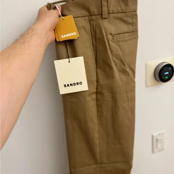 Elegant tan trousers by Sandro. Ideal for versatile styling. In brand new condition with tags still attached. Bought on final sale but didn’t fit me so had to sell here.DESCRIPTIONStraight-fit cotton canvas chinos with ironed creases, belt loops, zipped button fastening and side pockets.Waist size: 32-33Sandro Men´s cotton canvas chinosStraight fitIroned creasesBelt loopsZip fastening with buttons2 side pockets2 back pocketsTrue to size Bought