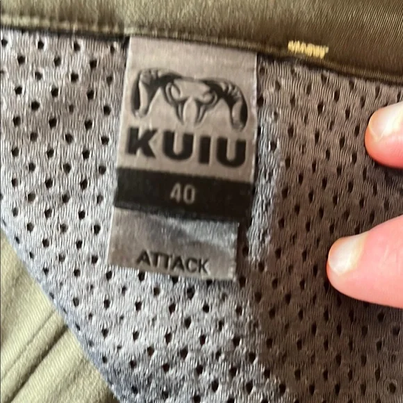 These cargo pants in green are crafted from a robust technical fabric, offering a relaxed fit for enhanced mobility. Ideal for outdoor activities. 40” waist, 34” inseam. Zipper side venting for increased breathability.