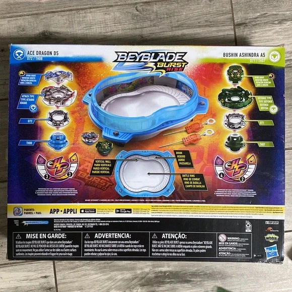 PLEASE READ ITEM DESCRIPTION CAREFULLY!This bundle is for a mixture of new and used Beyblade toys. The Vertical Battle Set itself is pretty brand new in my opinion. The box is opened but the toy itself is intact. It is still selling on Amazon and Walmart for $60+. The top right one is brand new with no box damage, the bottom right one is brand new with box damage. Each are sold on Amazon for $10+.The bottom 3 are all in used condition. Priced amazingly as is but make sure you bundle up for at least 30% off~
