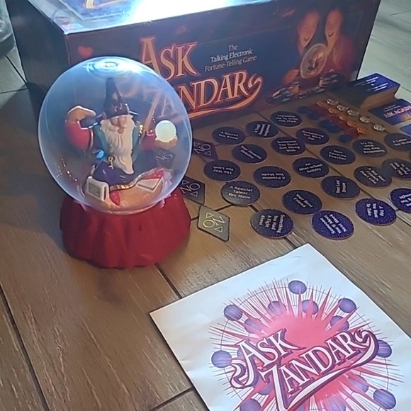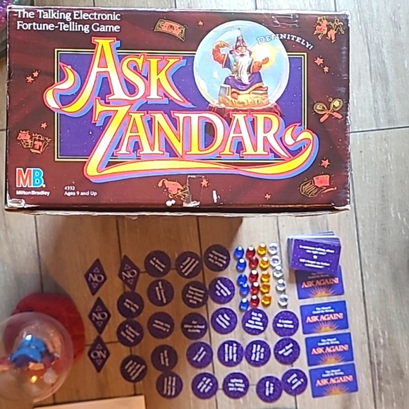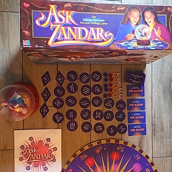 This vintage Milton Bradley board game from 1992, titled "Ask Zandar," is a great addition to any game collection. With a fantasy theme and recommended age range of 9 and up, it´s perfect for both boys and girls. The game can be played by a minimum of 2 players and includes a variety of aspects such as the brand, game type, year, award, and character family. The game is in great working order. Zander speaks. Batteries not included.See photos for signs of use.Only items in photos included.