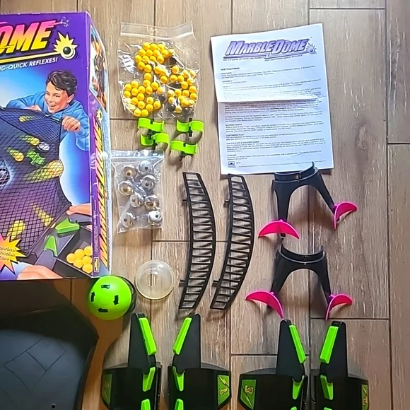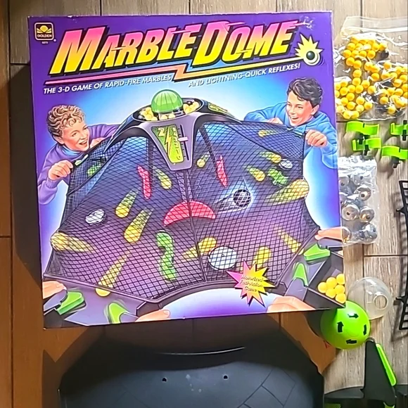 Experience the thrill of battle with this classic board game, Marble Dome. It´s perfect for 2 players and comes with a variety of aspects that make it an exciting addition to any game collection. With a theme of action and a character family of Battle Dome, this game will keep you on the edge of your seat.See photos for signs of use. Only items in photos included.