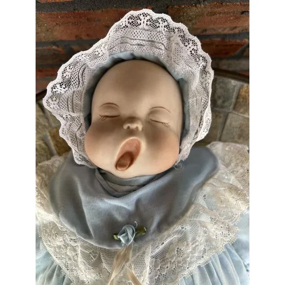 Porcelain Custom Doll Yawning Hand Made Bonnet Gown Petticoat Slip Dolls Millie