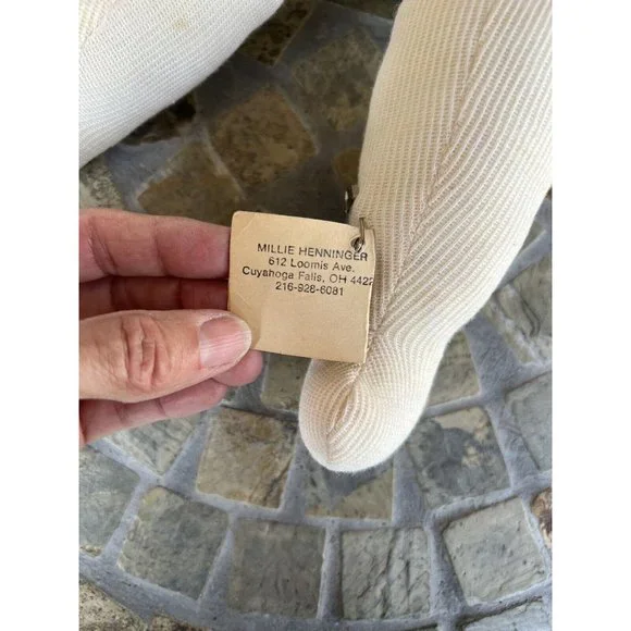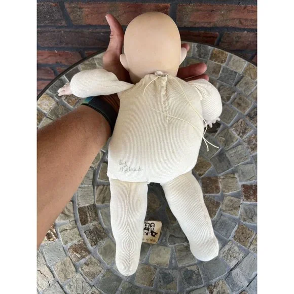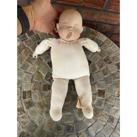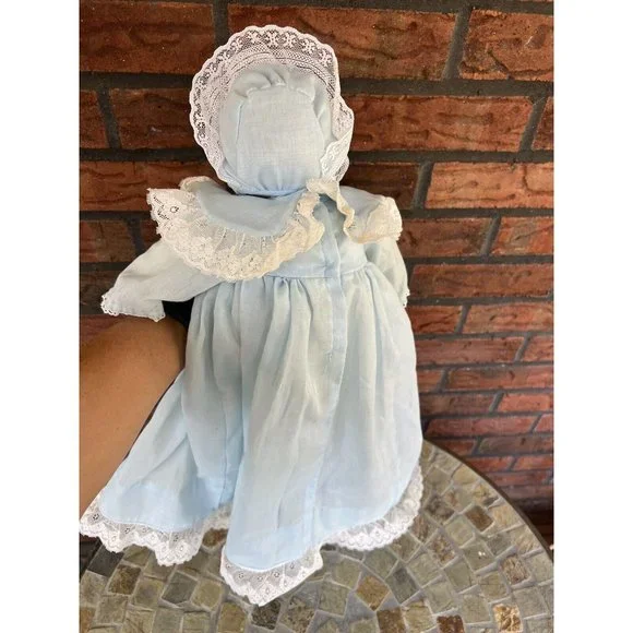 Porcelain Custom Doll Yawning Hand Made Bonnet Gown Petticoat Slip Dolls MillieDoll has porcelain head and hands; the rest is soft body.This includes everything shown.You get the doll, the bonnet, the petticoat, the dress, and pair of crocheted booties.The dress does have a few places where stitching has come loose!!Doll is about 15" long and when arms are spread wide it is about 14".I ship fast!!
