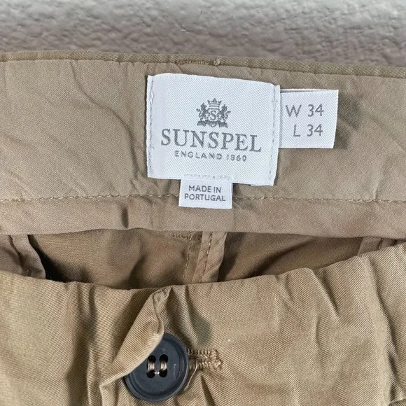 SUNSPEL Chino Pants Men 34x34 Beige Flat Front Straight Leg Designer NWOT $245Please view pictures for measurements. Please view and zoom in on all of the pictures as they are part of the description.(SEE PICTURES FOR MEASUREMENTS TO ASSURE PROPER FIT)We have a huge selection of New and Preowned items and we list new items daily, so please click the "SAVE SELLER" button so you can be updated with our new listed items. THANKS FOR THE SUPPORT!I ship items out every day Monday-Saturday, so expect a quick delivery. Thank you!All used clothing is laundered and cleaned that meets eBay policy.