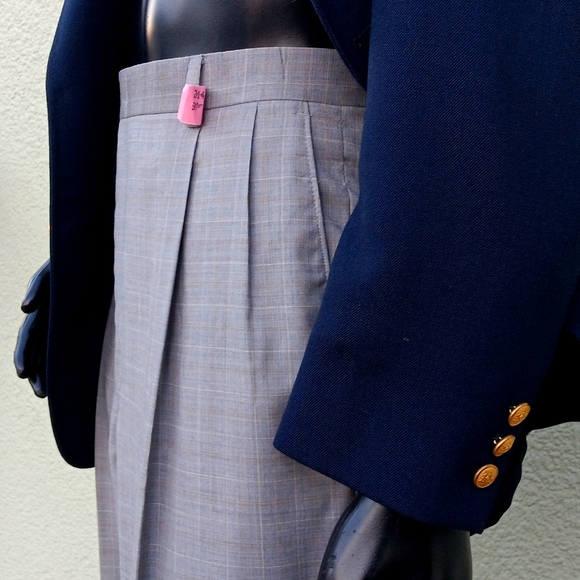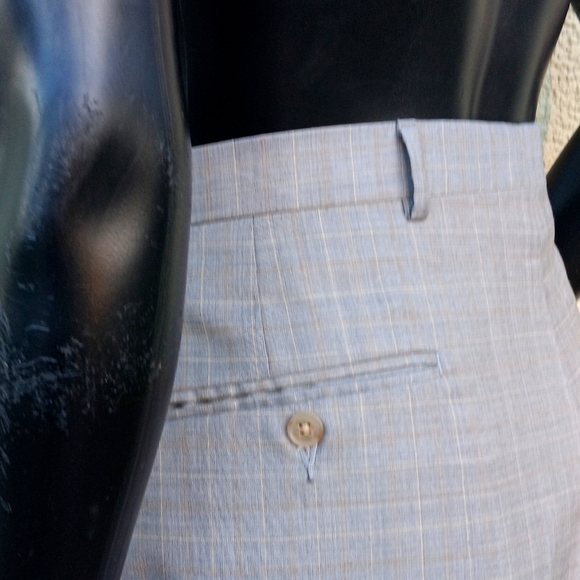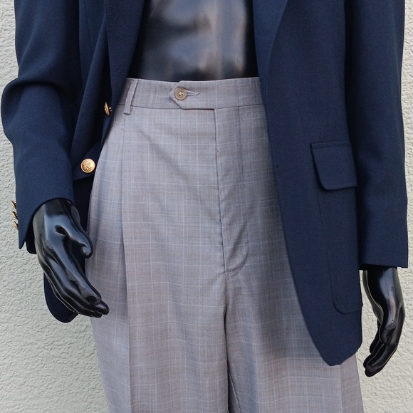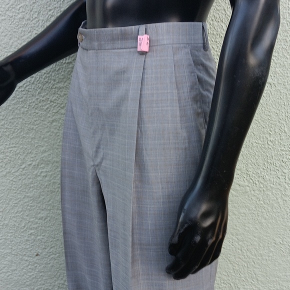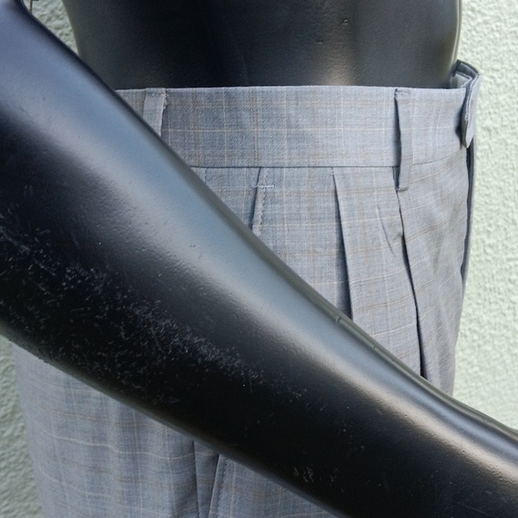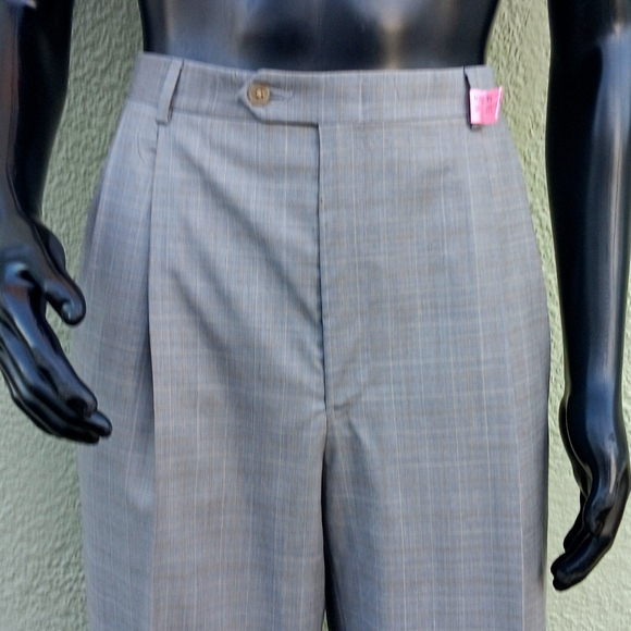 PURE WOOL LUXURY FABRIC WINDOW PANE DESIGN DOUBLE PLEATED FRONTLINED TO THE KNEESEXACT MEASUREMENTS WAIST 37"INSEAM 32"CUFFS 1.75"