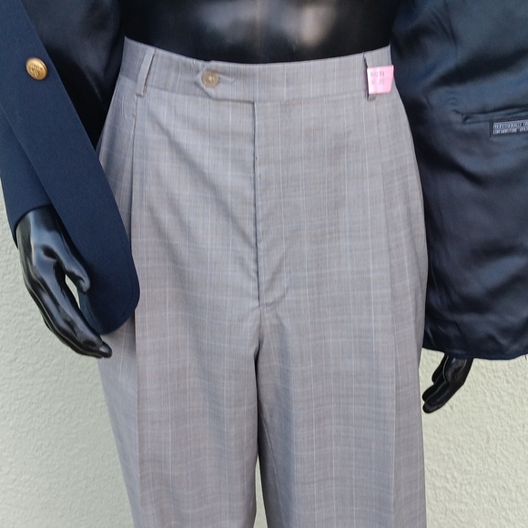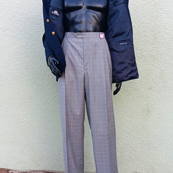 HART SCHAFFNER MARX MEN´S PURE WOOL DOUBLE PLEATED WINDOWp PANE LUXURY TROUSERS