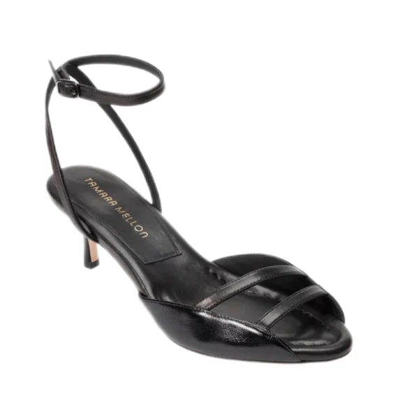 Tamara Mellon Black Strappy Kitten Heels