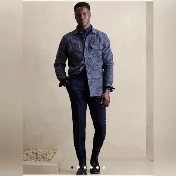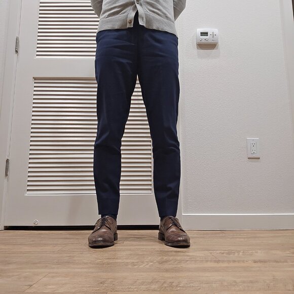 This is for 2 pairs of Banana Republic trousers in a tailored fit. They taper down at the ankles for a beautiful modern fit for slender legs. I had these hemmed so they have a 29" inseam. I´m 5´ 9" and 145lbs and they fit perfectly.The colors are "preppy navy" and charcoal. I wore these about a dozen times each to the office and they are in excellent condition. Dry cleaned and stored in my closet.