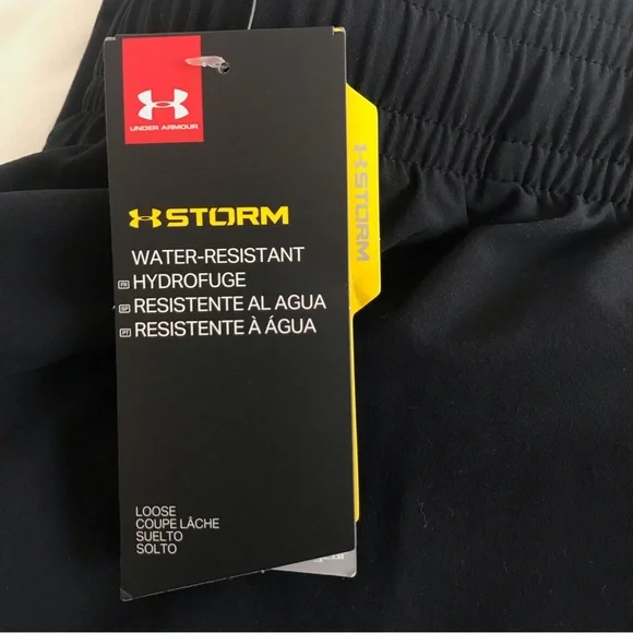 Storm water resistant loose fit black pants, grey mesh behind knees