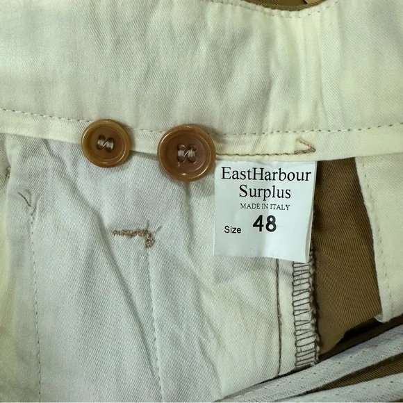 East Harbour Surplus Made In Italy 100% Cotton Chino Officer Pants Size: 32 (please consider measurements below)Brand New With Tags!Retail Price: $200Made in Italy100%...
