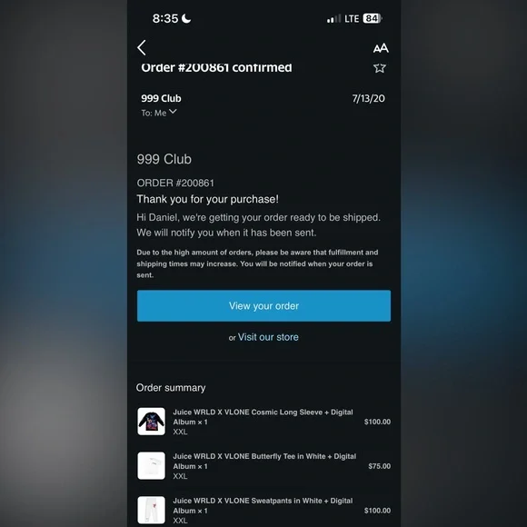 VLONE Juice Wrld White and Orange Sweatpants