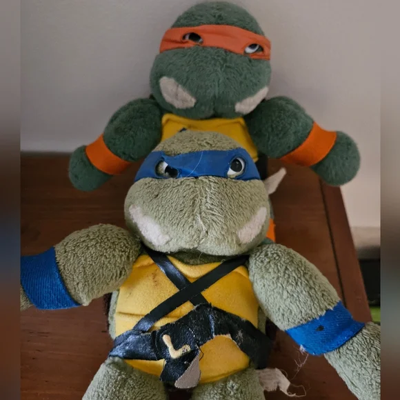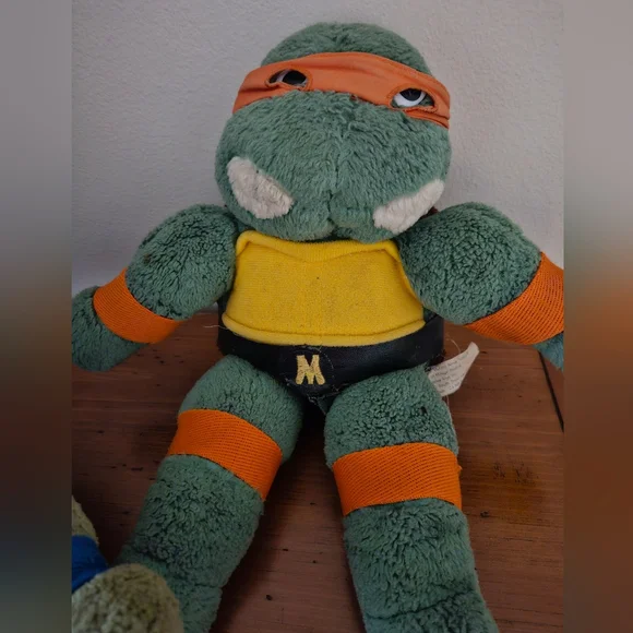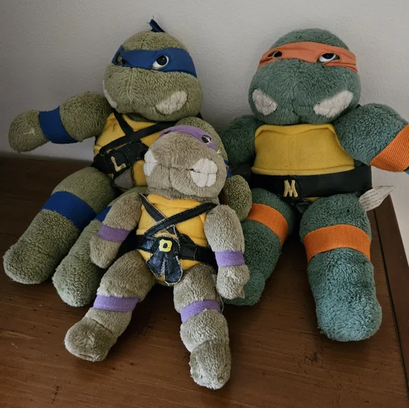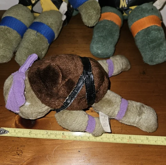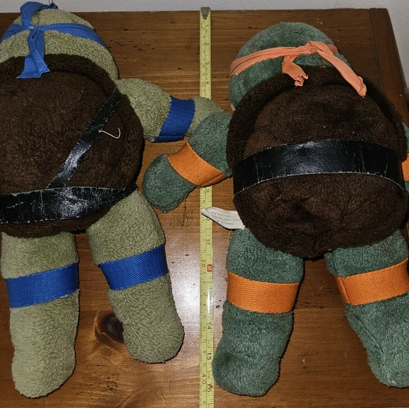 2 largeLeonardo and Michaelangelo 1 mediumDonatelloplaymates plushie 1989teenage mutant ninja turtles measurements on pictures I do not see any holes or major stains or markings....