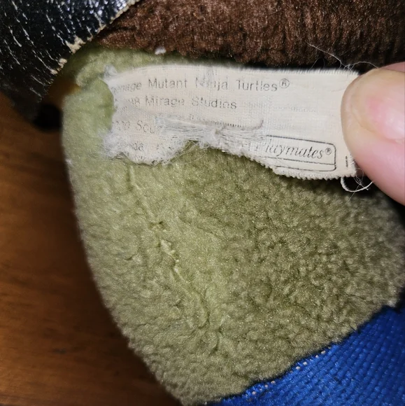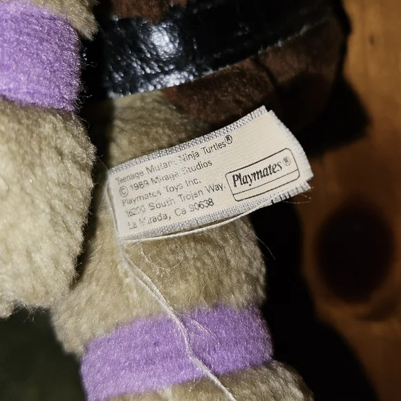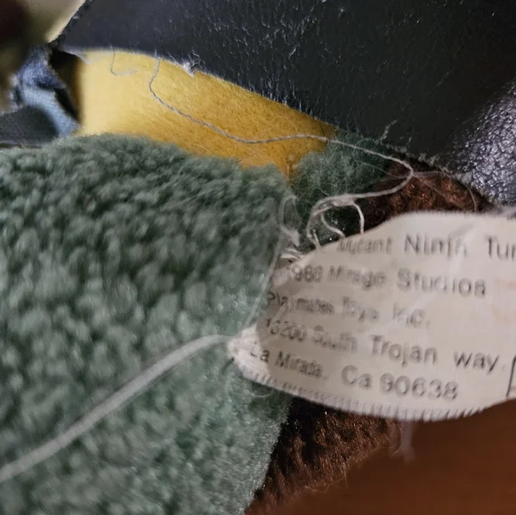 2 largeLeonardo and Michaelangelo 1 mediumDonatelloplaymates plushie 1989teenage mutant ninja turtles measurements on pictures I do not see any holes or major stains or markings. The black leather straps along the waist and back are a bit frayed, along with the original tagsSee picturesS3