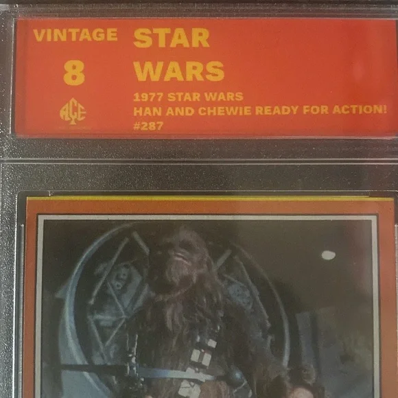 Vintage 1977 Star Wars Han and Chewie ready for action card number #287. Mint 8