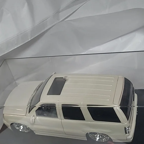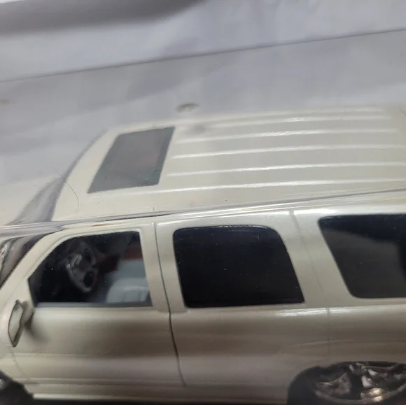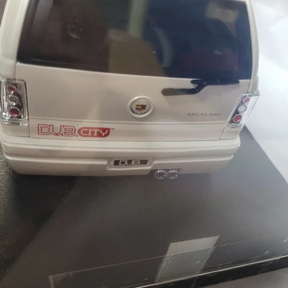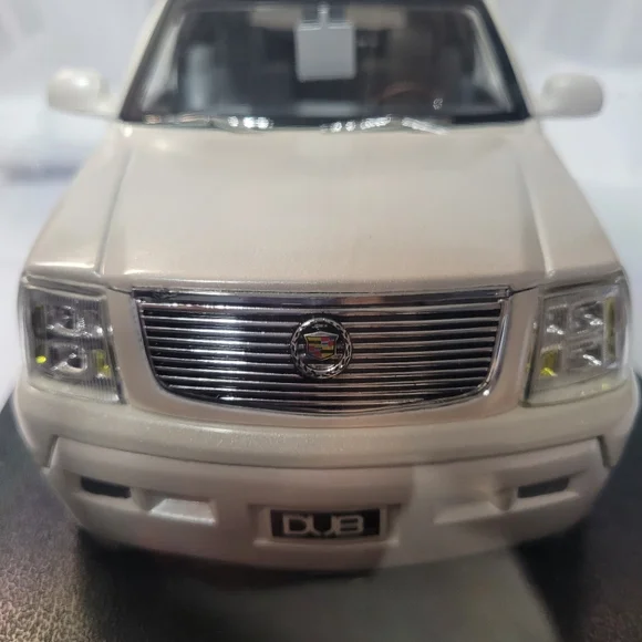 Stylish white model SUV featuring chrome wheels. Perfect for collectors.Dub City Jada Toy Big Ballers 2002 Cadillac Escalade 1:18 RarePre owned do not have the box but will ship in plastic display case as shown.