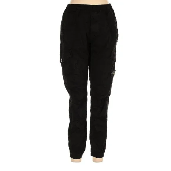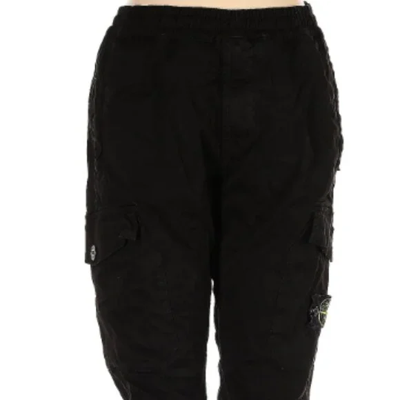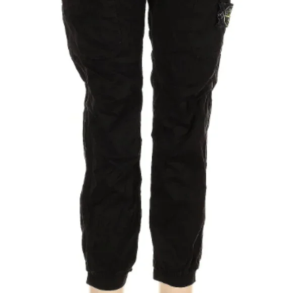 Black cotton canvas cargo pants with compass patch. Jogger cuffs.Great pre-owned condition; light overall wear, minor fading, slight pilling to the patchSize 28Waist: approx. 14" acrossRise: approx. 11"Inseam: approx.27"See my closet for more Stone Island & other great brands. Save when bundling 2 or more items!