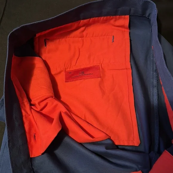 Carolina Herrera Men chino pants Size 38New no tags Refer to photos for additional detailed measurementsDetail-Security Sensor left a flaw not sure if it could be removed