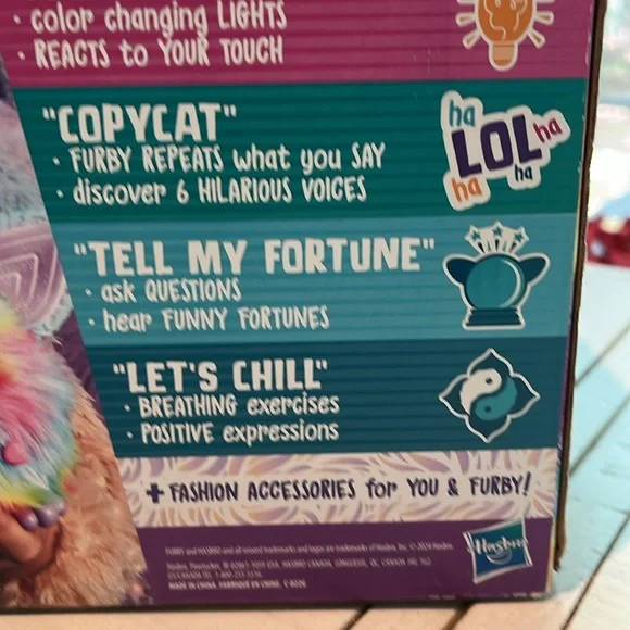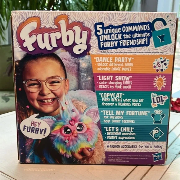 Hasbro Furby Tie-Dye Plush (HSBF8900)This is the Furby Tie Dye Interactive Plush Toy. It is an interactive plush toy that features 5 voice-activated modes and over 600 phrases, jokes, and songs. It responds to hugs, pats on the head, shaking, and feeding. The toy includes 15 clip-on beads for dressing up Furby and creating fashion accessories that kids can also wear. It is designed for children aged 6 years and up, making it a suitable gift for young ones. Meet your child´s new best friend with the Interactive Toy. This vibrant multicolor toy is perfect for imaginative play and endless fun.
