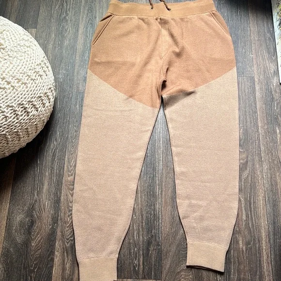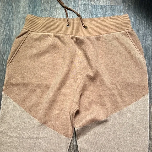 Two toned jogger. Side pockets and drawstring tie waist. Tapered ankles. Pair with our Francis Hoodie. Shown here in Camel Combo.Style with good energy.Details−8% Wool, 68% Acrylic, 24% NylonMade in China Drawstring waistStyle with the Francis Hoodi