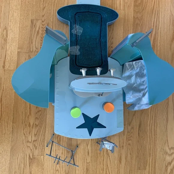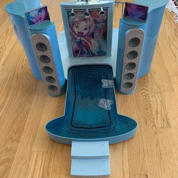 Bratz runway with working lights. Also has motorized track for the dolls to use as a runway (the lights work but needs new batteries, track only worked very slowly when I tested it - no guarantees). You can also play music through speakers. Includes accessories as pictured.Note: this item is heavy, price reflects additional shipping costs