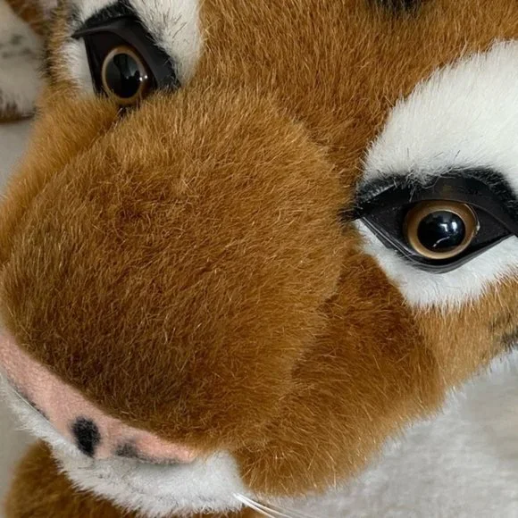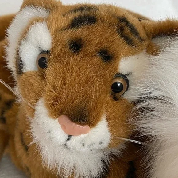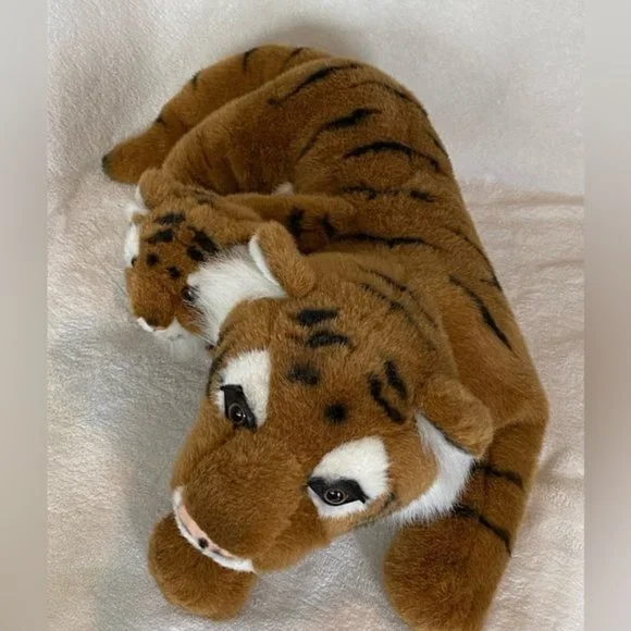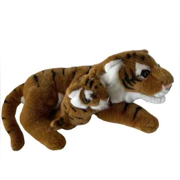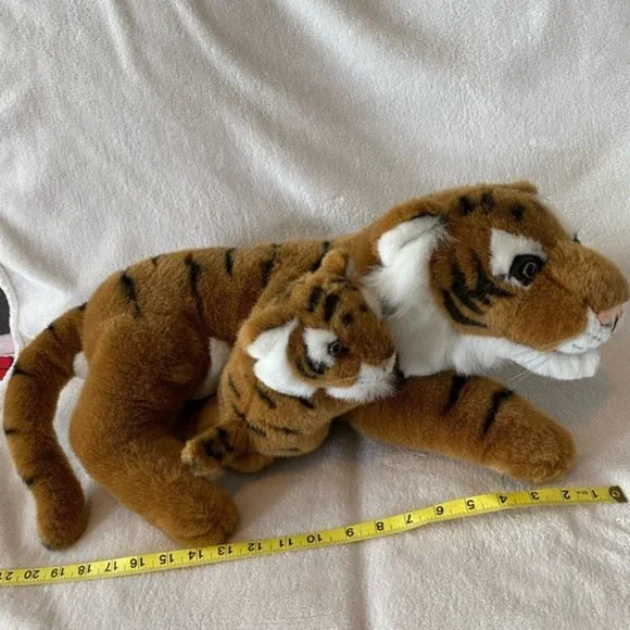 Vintage 1996 Ganz Tiger with baby plush stuffed animal soft realistic 20” long. In excellent condition no rips no tears no holes no stains from smoke free home. There is a tiny scratch to the glass eye of the mother tiger. See picture 8.The baby cub is attached . Clean cuddly soft. Bundle and save.