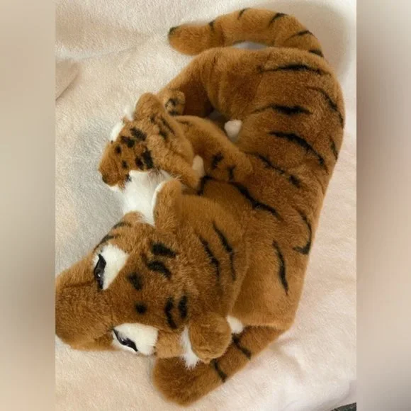 Vintage 1996 Ganz Tiger with baby plush stuffed animal soft realistic 20” long. In excellent condition no rips no tears no holes no stains from smoke free home. There is a tiny...