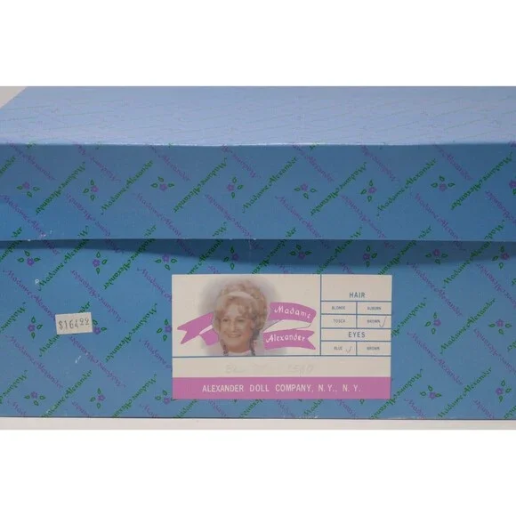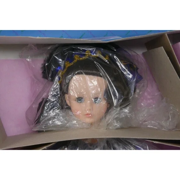 She measures approx. 14" tall and comes in the original box which has some wear.