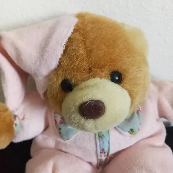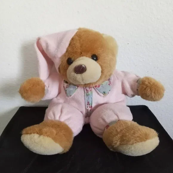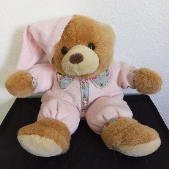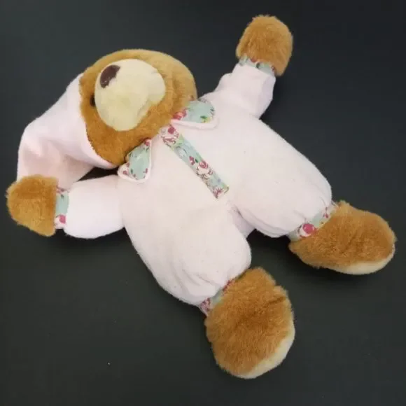 Vintage Luv Bunch Stuffed Brown Teddy Bear wearing cozy pink terry cloth pajamas trimmed in signature 1991 floral print and pink terry cloth night cap. Adorable stuffed animal for...