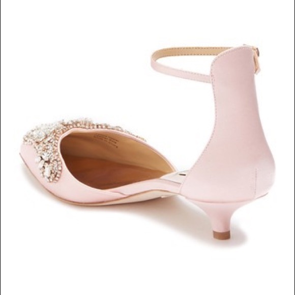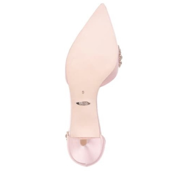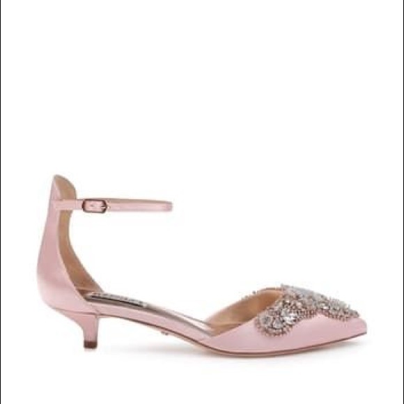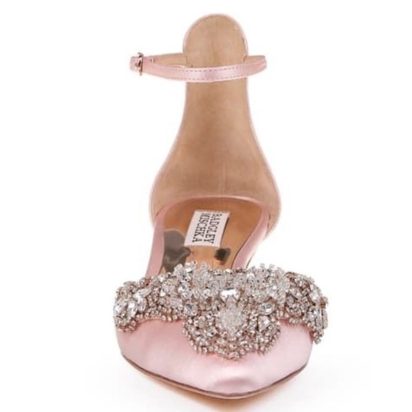 An extravagant arrangement of crystals sparkles on a pretty kitten-heel pump that´s ready for any special occasion. Details:* Pointed toe* Embellished vamp* d´Orsay design* Adjustable ankle strap with buckle closure* Lightly padded footbed* Kitten heel* Approx 1.5" heel* New without original box* Comes with dust bag* Textile upper, leather sole* Color: Powder Pink