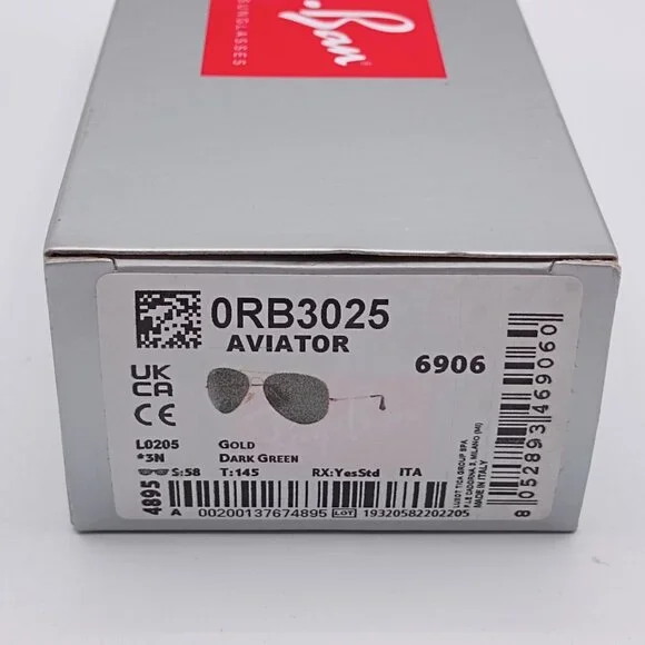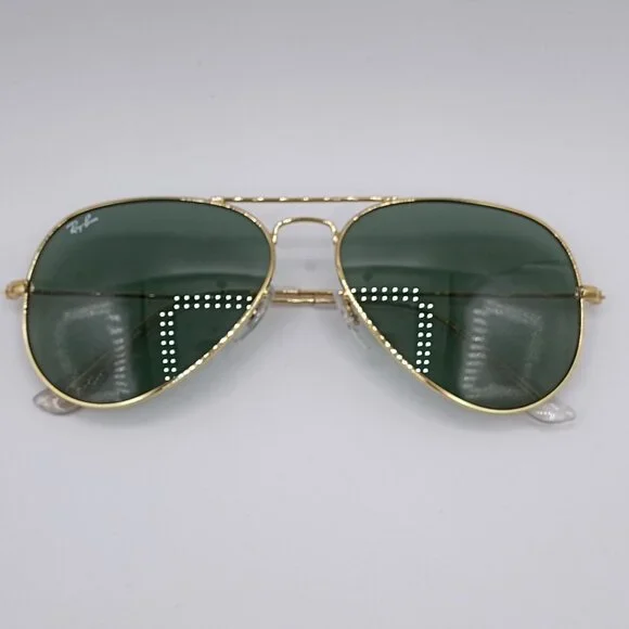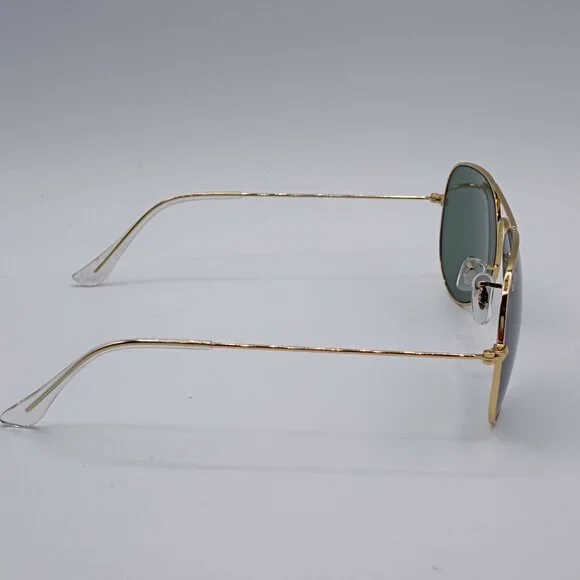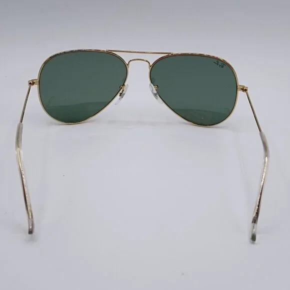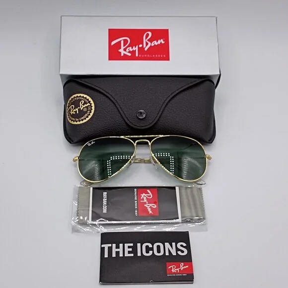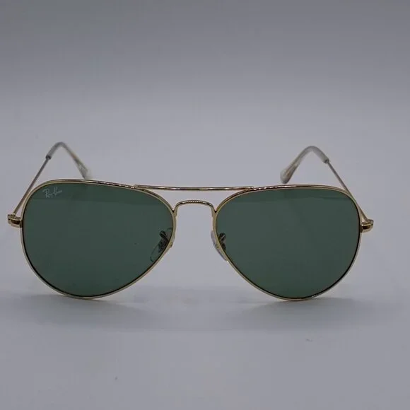 Elevate your style with the timeless Ray-Ban Men´s Aviator Classic Sunglasses, model RB3025 L0205. Featuring the iconic gold metal frame and dark green lenses, these aviators are perfect for anyone seeking both sophistication and functionality. Known for their lightweight design and premium materials, these sunglasses provide excellent UV protection while delivering a sleek, fashionable look. Brand new in box (NIB), these aviators are the perfect addition to your accessory collection. These Ray-Ban Aviator Classic sunglasses are the ultimate blend of style and functionality. The gold frame and dark green lenses create a look that is both timeless and versatile, making them suitable for any occasion. Whether you´re enjoying a sunny day outdoors or simply adding a stylish accessory to your wardrobe.Features:Brand: Ray-BanModel: Aviator Classic RB3025 L0205Frame Color: GoldLens Color: Dark GreenFrame Size: 58-15 (One Size OS)Frame Material: Lightweight and durable metal for a comfortable fitLens Material: High-quality glass lenses for superior clarity and scratch resistanceDesign:Classic aviator shape with a thin gold frame and double bridgeAdjustable nose pads for a custom, secure fitDark Green Lenses (G-15): Offer true color clarity and enhanced contrastUV Protection: 100% UV protection to safeguard your eyes from harmful raysCondition: Brand New In Box (NIB) – Never worn, comes with original Ray-Ban packaging, case, cleaning cloth, and authenticity card