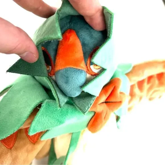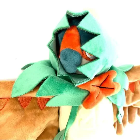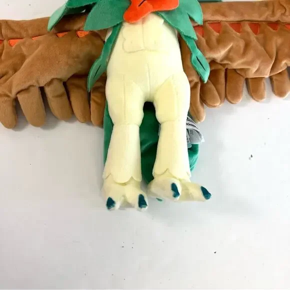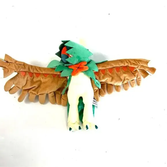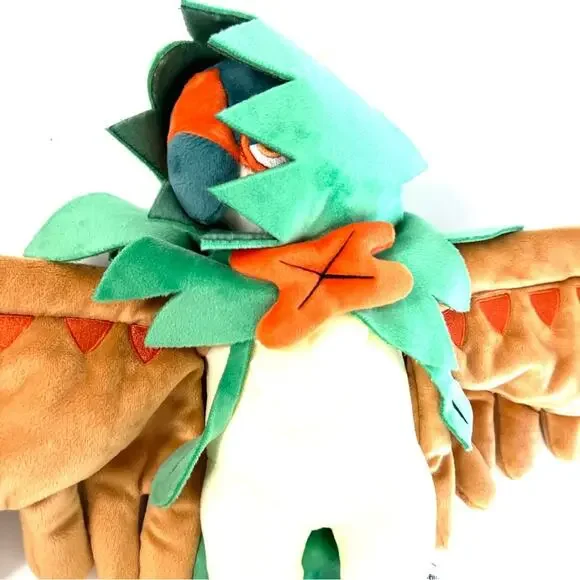 MANUFACTURER INFO: With posable feathery arms, a distinctive notched cowl and plenty of embroidered details, this Decidueye plush is amazingly impressive and stands fully 9 inches tall—with a 12 inch wingspan! A mixture of plush types makes the body sleeker than the wings; the scalloped hood is deep and mysterious, and the whole plush is topped off with an orange bow tie-like ornament and an ivory colored plush feather on top. Set the wings any way you like, to stand, gesture, or take aim!Posable arms to help position your Pokémon plush just so!Pokémon Center OriginalMore Details:Item Dimensions: 9 x 4 x 12 INCountry Of Origin: Made in ChinaMaterials: All new material / polyester fiber / polyurethane foam / cotton / polyoxymethyleneCare Instructions: Surface Wash OnlyRecommended Age: 4+ YearsItem Weight: 11.3 OZPreowned condition. Shelf sitter. SPECIAL NOTES