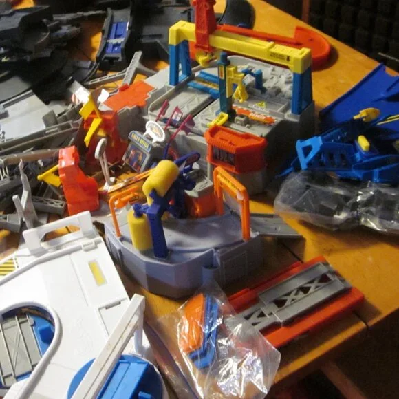 vtg whole lot Hot Wheel tracks building signs street light gates