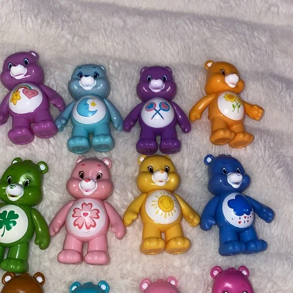 Care Bears 2016 Figures Set of 14 Collectors Edition Sweet Sakura Bear PLUS 5 extra bears! Total of 19 bears. Please see photos, these are in well loved played with condition but lots of life left. Arms and legs are moveable. Super cute! What you see in the photos is exactly what you get. All 19 bears. Enjoy!