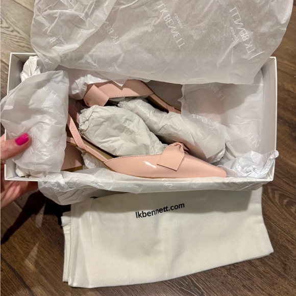 Just in time for Easter, Spring and all the Summer things! Designed for parties or perking up your everyday wardrobe, the new Cadence slingbacks are pretty and playful. Beautifully made in Spain from ballet pink glossy patent leather, they have a pointed toe, chic bow detail, an elasticated slingback and an easy-to-wear 55mm block heel. Slip them on with jeans and a tee or your fanciest frocks, Cadence can do smart and casual. Heel Height: 5.5cm / 2.2"Country of Origin: Made in SpainToe Shape: PointedPrint/Pattern: PlainSustainable: LKB ConsciousMaterial: PatentHeel Type: StilettoUpper Material: 100% LeatherSole Material: 100% SyntheticLining: 100% LeatherUE Size 37 | US 7-7.5Comes with original box and dust bag!