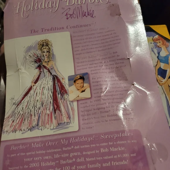 Holiday Barbie 2005, Bob Mackie doll. Never taken out or played with but the box got messed up from storage.